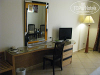 Прилетели в семь утра, заселились в час дня. за 20 $ нам дали номер с видом на внутренний двор и горы с закатом, огромной кроватью. До того момента, как нас заселили, мы без проблем пользовались территорией отеля:кушали и купались, нам даже полотенца под честное пионерское дали бесплатно.