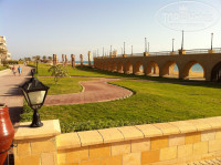 Территория вокруг отеля очень интересная! Слева дикий пляж и пейзаж пустыни, а справа красивый (уходящий в море) мост с колоннами (кстати посреди моста можно спуститься на пирс и понаблюдать рыбок, т.к. море очень прозрачное), а еще дальше набережная, вдоль которой аллея с пальмами - до самой площади с цветными фонтанами (там вообще красота неописуемая – лучше это увидеть).