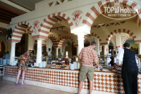 Самое обидное первый раз за 10 лет за границей отравилась, несмотря на все ухищрения есть только то что прошло термообработку , не содержит незнакомых специй и добавок не спасло, так же отравились и мои друзья включая ребенка. Фрукты как бы есть, но видимо что бы русские их ведрами не уносили, они порезаны на дольки и плавают в воде, не факт что кипяченой. Наблюдала на ресепшене жуткий скандал по поводу того, что из-за задержки рейсов в домодедово мы все попали в отель на день позже, а купон в а-ля карт дается только тем кто отдыхает больше 7 дней. Лучше б их никому не давали вообще, мы в китайском ресторане стойко досидели до третьего блюда, большая часть народу ушла на первом-втором, то что они готовят не имеет ничего общего с китайским рестораном да и с едой в целом. Неужели они и за деньги это же приносят? Я в жутком восторге от египетских круасанов, но в этом отеле за весь отдых откопала только один. В общем соглашусь со мнением многих – питание плохое, однообразное, т.е. это картошка пареная всю неделю, никаких пюре и фритюров. В меню меняется одна позиция – суп пюре. Кстати! На втором этаже точно такой же ресторан-общепит и практически пустой, не ленитесь подняться.