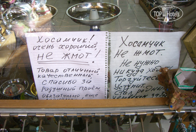 PS На рынке в старом городе, есть палатка с названием Roma Bazar или как-то так, продавца зовут Хусан или Хосан. Его палатка обклеена большим количеством листов с коряво написанным текстом аля "Хасанчик не жмот...", "Хасанчик классный..." и так далее. Сложно не обратить на это внимание. Так вот, мой вам совет, обходите стороной эту палатку =)
