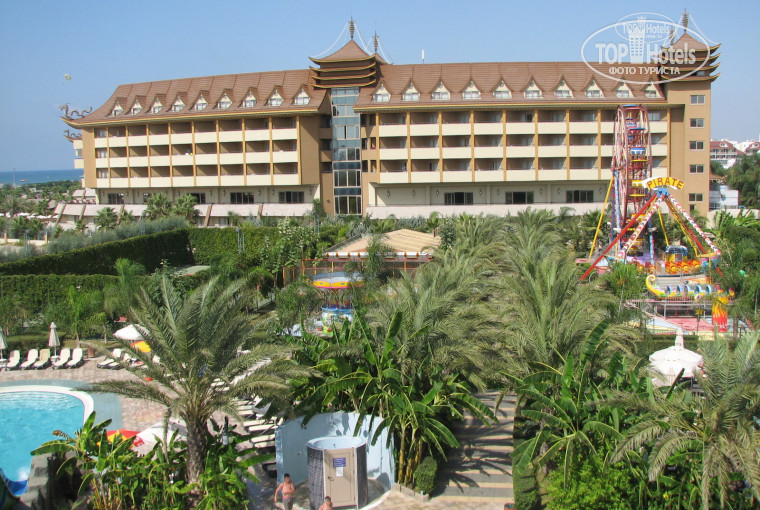 Разместили нас сразу, несмотря на то, что официально время заселения ещё не настало. Мы брали номер с видом на море. Турагентства тут лукавят. Очень немного номеров с прямым видом на море, Большинство - с боковым, который продают как "вид на море". С одной стороны корпуса - вид на аквапарк и парк - аттракционов, с другой - на пустырь и через него на другой отель. У нас был пустырь, что сначала расстроило, а потом не напрягало совсем. Номер - хороший, ничего лишнего, но всё новое. Сейф и мини-бар - бесплатные.