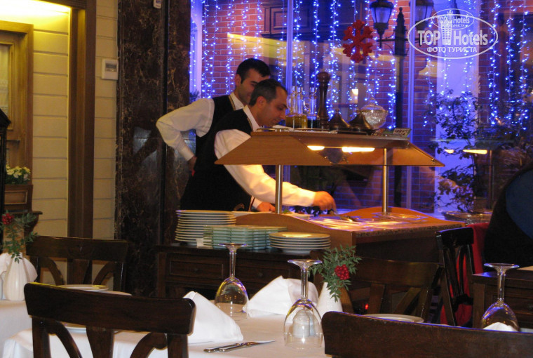 про завтраки предыдущие туристы пишут правду - все было хорошо, в большом количестве и вкусно. ресторан в отеле разделен на два зала. в первом стоят столы с блюдами на завтраках, второй зал оформлен гораздо лучше - в стиле улочки - это ресторан Pasazade. он при отеле работает утром на завтрак, в остальное время как ресторан. мы два вечера обедали в нем - об этом подробнее.
