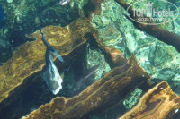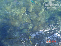 Пляж большой. Понтон - да, метров 400, но идти по нему очень интересно, потому что на мелководье выплывают самые разные рыбы - вообще незаметно дорога проходит. А водится возле этого отеля уйма живности. Очень красивые рыбки, моя коллега видела черепаху, неоднократно была замечена мурена и скат.