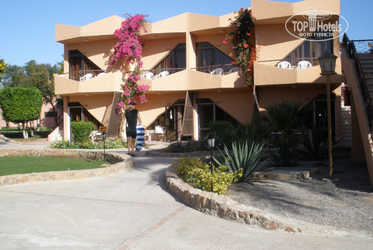 Я (в меру) искушенный турист, а вот муж был впервые заграницей. И мне очень хотелось, чтобы ему понравилось))) Спасибо отелю, он справился с поставленной задачей! Мы попали в милое, уютное место. Отель про-немецкий - а значит, чистота и порядок. Русских практически не было. В основном немцы - молодые семьи с детишками да пожилые фрау. Но и анимация, персонал и вообще любое общение - на немецком. По английски говорил только (!) управляющий отеля. Ну да язык жестов никто не отменял)) Отель не новый, но содержится достойно. Мебель - по немецки проста, скучна, но удобна (да и не в мебели счастье, но комфорт все-таки есть). Мы жили на первом этаже двухэтажного бунгало недалеко и от пляжа, и от ресторана, и от бассейна. Доплачивать не потребовалось))) Все домики окружены зелеными садами - деревья, цветы - все в пышном цвету, что радовало глаз. Еда- типичная для Египта, есть определенное разнообразие. Все добротно, без "старья" (типа завядших в обед овощей, переподанных на ужин). Персонал очень приветливый, отзывчивый, правда, повторюсь, не говорят по русски, но и это иногда в плюс (особенно, после напряженной работой связанной с постоянными переговорами, слышать речь и не понимать о чем она - КАЙФ))) Мы привезли с собой нарды, но забыли кубики. На следующий день после нашего вопроса - где найти кубики официант принес их нам, при этом отказывался от денег(!!!) Ну да мы все-таки восполнили, когда он обслуживал наш столик за обедом. Вот анимация для взрослых и не фонтан, но и не слаба совсем, правда опять-таки на немецком. Я до сих пор помню какую-то детскую немецкую песенку, которую там юзают постоянно. Кстати, с детишками они постоянно что-то придумывают, чем-то все время заняты, но мы не очень пристально рассматривали.