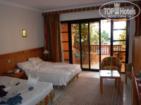 Сразу понравилось, что весь персонал русско-говорящий. Приехали мы в 9 вечера, на ресепшене заполнили бумажки и нас отправили ужинать. Через 15-20 минут нас заселили, даже без намека на чаевые, в номер (369) с видом на детскую площадку (вид без забора и дороги :) ). В номере все работало (в т.ч. и двери) и было в хорошем состоянии (сантехника свежая, но в ванной присутствовал запашок от шторки) и мебель реально старая. Но нам это (про мебель) было не важно. Сейф и минибар были и работали. По приезду нам его заполнили. Комаров или др. насекомых в номере не было вообще (хотя на ночь включали фумигатор). Очень порадовал большой балкон, хотя мы там не бывали.