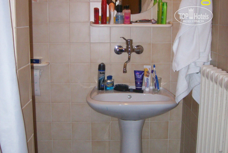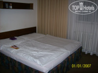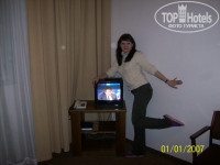 Стандартный номер с большой двухспальной кроватью!!!))))Есть телевизор с русским ОРТ, холодильника не нашли, но нам и хранить в нем было нечего...Пару кресел советских времен и журнальный столик.Санузел совместный, с горячей водой проблем не было.