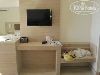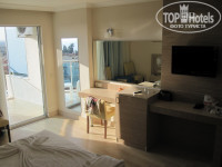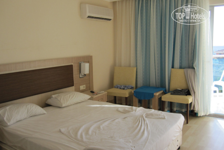 2.Это территория и сам отель.Нет зелени ВООБЩЕ.1,5 куста у старых корпусов и всё.Территория ОООчень маленькая.Номер приличный,все новое, ремонт, только мешала 3я 2 я односпальная кровать.Как я поняла, у них все номера 2+1. Столовая...мы ели только на улице.Потому что там не не нравилось совсем.