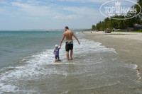 Пляж: можно сказать чистый. Есть немного ракушек, кот. любят собирать отдыхающие. Проблем с лежаками не было. Как оказалось у нас было очень спокойное море на всём побережье. Туристы с центрального побережья приезжали к нам покупаться,т. к. у них после обеда волны становились сильнее.