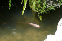 Территория: очень ухоженная, много зелени, небольшой бассейн, есть Красивая альпийская горка с водопадом и живыми морскими окунями.