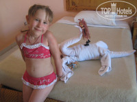 Понравилось то, что отель входит в сеть отелей, поэтому можно пользоваться обширной их инфраструктурой. Хорош аквапарк, дочери очень понравилось. Порадовал бассейн с подогревом. В море много красивых рыб, я и дочь ходили в моребез обуви - ни разу не порезались. Номер нам попался жуткий, вся мебель древняя, неуютный, зато бесплатный сейф в номере и бесплатный минибар. За фунт уборщик крутил дочери разные фигуры из полотенец, хотя убирал неважно. Немного напрягло, что море далековато, зато территорию всего комплекса мы так и не обошли, было где потеряться. Кормили отлично, я просто объелась гранатами. У отеля на улице много лавчонок с очень низкими ценами, только туда надо выходить уже загорелыми, незагорелых туристов рвут на части торговцы. Мы купили маску для плавания за 7 долларов, футболок по 5 долларов, магнитов по доллару за 3 штуки.