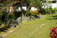 Хотя большую часть отдыха мы не пользовались общим бассейном (гораздо приятней потягивать холодное пиво или джин-тоник сидя в воде около собственного номера), не сказать о нём пару слов будет несправедливо. Бассейн невелик, но сделан явно с любовью. На фото это тяжело передать, но когда плаваешь в нём возникает ощущение что купаешься в тропическом саду — со всех сторон бассейн окружён пальмами и прочей экзотикой, те же растения и на островках посередине бассейна.