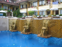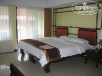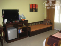 Отель понравился. Про горку и удаленность от моря знали сразу, что нас вполне устроило. Мы бронировали номер делюкс, поэтому заселили в новый корпус, который находится на горке. В левом крыле этого четырехэтажного корпуса есть лифт, можно пользоваться им, если сложно подняться на 4 этаж. Номер понравился сразу, такой же как на фото с официального сайта, просторный, светлый, с большим жк-телевизором, вид с балкона шикарный. Завтраки, действительно, однообразные, даже иногда не ходили. До пляжей идти близко. Расположение отеля самое хорошее, в отличии от тех, что стоят через дорогу от пляжа, с балконаи, выходящими на проезжую часть. У нас красота, тишина, спокойствие!!! Вокруг изобилие кафе и магазинчиков. В отеле периодически(где-то через день) проходят вечерние шоу-программы. Оплачиваешь шведский стол(390-490 бат), напитки за дополнительную плату,кроме воды, кофе, чая. Мы один раз сходили, а потом смотрели представления с балкона. Единственное, что омрачило впечатление об отеле, это то, что в мини-бар забыли поставить 2 банки соды, а мы сразу не проверили, поставили только на 5 день, и, естественно внесли в счет, ругаться не стали,т.к. сами виноваты, надо быть внимательней, заплатили 60 бат.
