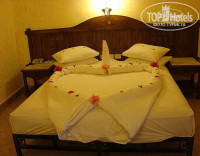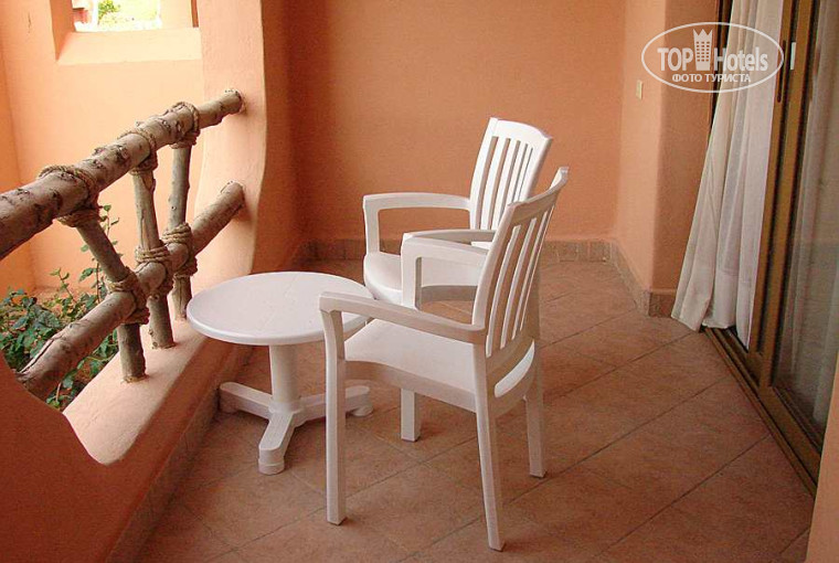 Номер дали на 1-ом этаже (между ресепшеном и бассейном) с очень красивым видом с балкончика на зеленые и цвтущие деревья и кустарники, озерцо с мостиками и на ресторан. Номер простой. Все что нужно для удобства. Большая кровать, диван, телек, сейф, холодильник, кондер. В ванной - унитаз, биде, раковина, душевая кабина, фен. Все работало, ни разу ничего не сломалось.