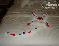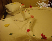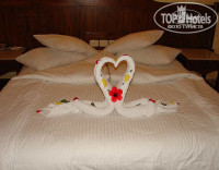 Чевые оставляли через день по доллару)) просто мальчик-уборщик ну очень старался - лепил этих лебедей, сердечки, какие-то фигуры геометрические, все это живыми цветами и листиками украшал! заработал - молодец! :)