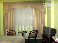 О гостинице. Номера - уютные, нам попались в малахитовых тонах с ковролином, кровати удобные, белье чистое, меняли каждый день, заметила, что после выезда из номера отдыхающих меняют даже одеяла, 6 полотенец, шампунь, мыло, гель для душа при необходимости всегда докладывали, сантехника работала исправно, кондиционер работает на нескольких режимах (шею не продуло), на ночь открывали окно, улица не мешала. В номере холодильник, телевизор, журнальный столик с креслицами, туалетный столик с пуфиком, вместительный шкаф. Уборка в номерах ежедневная, происходила в наше отсутствие, приходили с пляжа всегда в чистый номер.