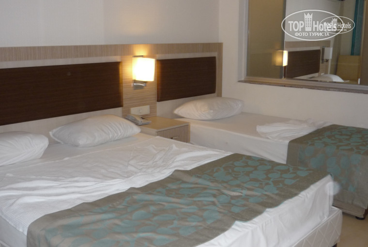 1. Заехали мы в отеле около 19-00 по местному (т.е. турецкому) времени. На ресепшене заполнили бумаги (при условии, что не я ни моя подруга кроме русского ни какого другого языка не знаем), при этом менеджеры-турки очень вежливо нам объясняли, что где писать. Отель ориентирован на немцев и англичан, русских было очень мало, но нам даже это нравилось, т.к. поехали то мы отдыхать не в Россию, а Турцию. Вся процедура по оформлению заняла мин. 20. Потом нас проводили в номер. Показали где чего находится, как и что включается. Да, персонал не разговаривает на русском языке. НО!!!!!!!!!!!! У них есть талан объяснять, грубо говоря на пальцах, и при этом все понятно. (Это я пишу для тех, кто совсем не знает языка).