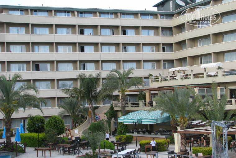 Отель очень понравился. разместили нас сразу в хороший номер - бесплатно и без проблем. Номера стандартные, светлые, с нормальной мебелью. В номере кондиционер, мини-бар, душ-туалет, телевизор (показывает 6 русских каналов), балкон. Мы жили в номере с видом на маленький бассейн, так что было тихо и спокойно отдыхать ночами. Шума не было слышно. Территория отеля большая и зеленая. Очень хорошо все расположено, грамотно спланировано.