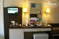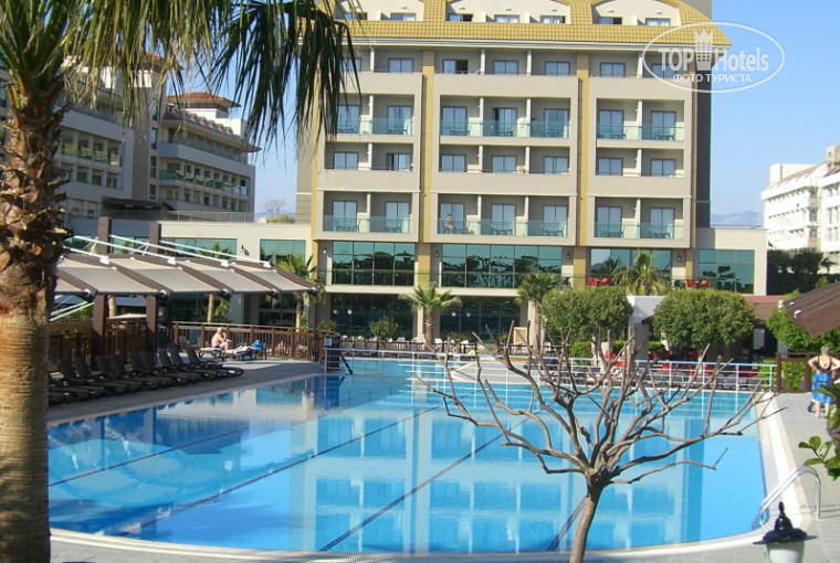 Номера. Номера все одинаковые, за исключением семейных номеров, они по-больше, а так различается только вид из окна. Отель их трех смежных блоков: ближе к морю номера на 3..., т.е первая цифра - это не номер этажа, а номер блока. Мы жили в 2415, 2 это блок-мы попали в средний блок, и море видно и горы с балкона, 4-этаж, а 15 комната. Номера с 1..., это дальний от моря. Номера очень даже хорошие, отель построен несколько лет назад (После Египта были приятно удивлены номером). Не фешенебельные, ясно, номера, но кто на каком бюджете отдыхает....Меня устроило в номере всё: ЖК телевизор с 4 русскими каналами; минибар, ежеднедневно пополняемый:2п.сока, 2б.газ.води, 2б.мин.воды,; бесплатный сейф. В ванной ванна, закрывающаяся стекл.дверьми, горячая вода постоянно, душ удобный, регулируется по-всякому, вроде глупости пишу, но опять же повторюсь, после Египта, где вода теплая, и душ в одном положении в лицо подает воду, в шоке уже и от данных банальных удобств. В Египте были в ноябре 2010г, в известном отеле, путёвка стоила в 2 раза дороже турецкого, а в сравнение с данным отелем не идет. Молодцы, турки, отрабатывают деньги, а египтяне "зажрались"! В след.раз поедем в этот отель, но в мае, потому что всё -таки погода в апреле-это как повезёт.Мы загорели, но 4 дня солнца мне было мало :(