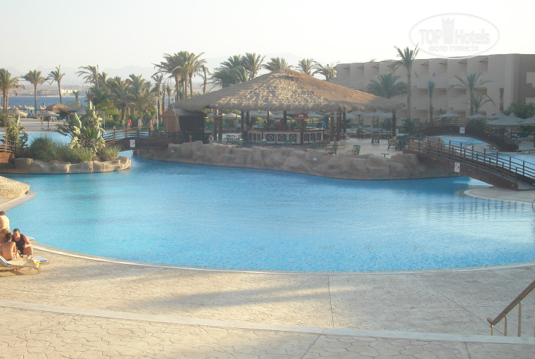 Территория отеля впечатлила сразу. Оговорюсь, что Sahl Hasheesh в переводе с арабского означает "долина зеленой травы" и это название вполне себя оправдало. Много раз ездили на экскурсии и заезжали за туристами в другие отели, но такой зеленой травы нигде не вмдели. Все очень аккуратно, ухожено и очень красиво оформлено. Два огромных бассейна и два детских, правда вода в них достаточно холодновата, на мой взгляд, для продолжительного купания. Но это все-таки май.