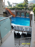 Нет территории !!! (вплотную к отелю с одной стороны бассек, с другой - столовка). Ну как впрочем во многих типичных отельчиках в конце Кемера... Бассейн оч.симпатичный (на фото), горка - единственное счастье постояльцев ! (ну если только ещё бесплатная сауна в холодные периоды) ...