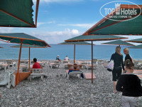 Пляж средний. Полное самообслуживание - full self-service edition. Сам ставь лежак (надо найти целый), ищи не порванный матрас. При неполной загрузке на всех лежаков уже не хватает, а что будет в июне не представляю. На пляже и в море камни. Ноги болят ходить. В баре Юпи (кстати юпи нормальный, не как у других) и горячие напитки. Туалета своего нет, а в общем так воняет, что одной рукой надо зажимать нос, чтобы не блевануть (честно хуже, чем туалет в придорожном кафе по дороге в Украине). Как они достигают такой аццкой вони при относительной чистоте - секрет.