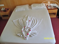 Отдыхали в мае 2011 впятером (4 взрослых и 1 ребёнок 9 лет). В Турции третий раз. До этого были в трёшках. Поселили сразу при приезде в отель. Номера дали вроде бы нормальные. Было холодно, попросили одеяла и номера поближе друг к другу. Администраторы на ресепшене по русски и по английски не говорят (или как мы поняли только делают вид, т.к в отеле всегда одни русские или украинцы - как же они тогда работают ?).Один администратор вообще похоже инвалид детства по голове - даже жестами не понимает. Нам сказали мол свободных номеров нет, и одеял нет. Обратились к гиду TEZ TOUR (Шерали). Отдельно про отельных гидов - за все разы пребывания в турции таких хороших гидов ещё не было (в хорошем смысле). Спросили есть ли проблемы, всё объяснили, не наседали с экскурсиями. Гид пошел и при нас вставил больших пистонов ресепшену - через час дали одеяла и на следующий день переселили в другой номер. Спасибо им. В номерах всё нормально, но есть пара нюансов: номера на 6 этаже без козырьков - если дождь, то прямо в двери, в номерах возле центрального лифта слышно, как едет лифт, и балкон расположен так, что люди, которые в лифте, едут в метре от вас (лифт стеклянный), так что особо на балконе не поседишь - всем интересно как вы там. Сломался кондиционер - починили сразу после жалобы.