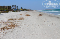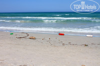 Территория пляжа не большая, но достаточная. Прибрежная зона очень грязная - водоросли, окурки, какие то сухие комки водорослей, которые мы сначала приняли за верблюжий помет и огромное количество попрошаек-продаваек. К лежакам не подходят, а вот у кромки воды от них не скрыться. Цены заоблачные.