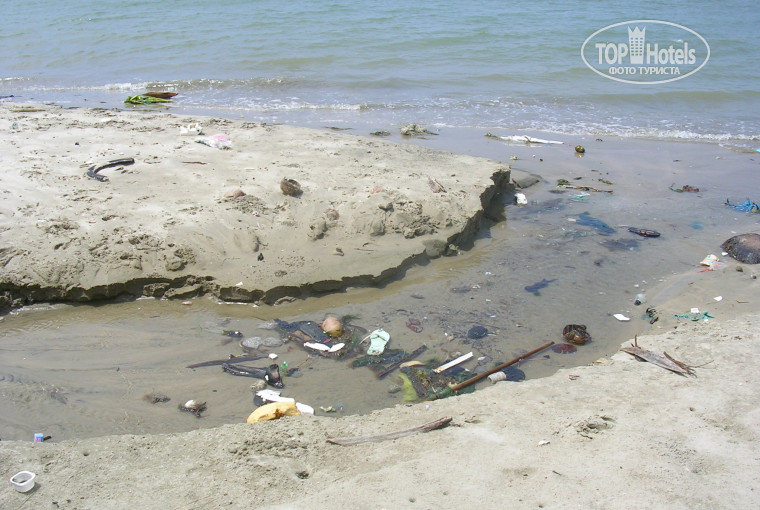 Пляж и море: Основной и главный минус: на пляже открытая канализация, вытекающая в море (находится около входа, рядом с торговкой жемчугом), обнаружить ее можно только при отливе, а слева (если стоять лицом к морю) в метрах 30-ти еще больший сток канализации (см. фото).
