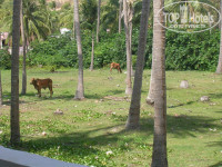 Общее впечатление: достаточно уютно, зелено, но: маленькая территория, большинство номеров выходят окнами на бассейн – слышимость близка к абсолютной, т.е., если часа в 2 ночи наши земляки захотят отпраздновать свое прибытие в отель около бассейна, Вы будете слышать все подробности их беседы, хотите Вы этого или нет. Или, как указывалось ранее, на выходные в отель приезжает много вьетнамцев, но никто не пишет о том, что услышите Вы их на рассвете, около 4-х часов утра, когда все они разом с веселыми криками прыгают в бассейн и получается этакий «вьетнамский супчик», длится это «удовольствие» до 7 утра, когда начинается завтрак, и все местные разом удаляются для принятия пищи. Еще одна особенность: слева от корпусов отеля живет коровья семья: корова, бык и теленок, вполне себе симпатичные животные, но когда ветер дует с их стороны, а Вы идете к себе в номер, запах стоит родной, сразу вспоминается детский стишок: «хорошо в селе родном, пахнет сеном и …», мелочи, конечно, но если кто-то едет за чистым воздухом….может получить сюрприз…