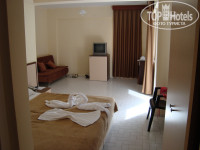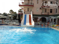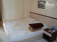 Здравствуйте!Мы ездили с 08.05.2011 по 20.05.2011 в двоём с супругой в этот отель(сына 1,5 года оставили дома с бабушкой и сильно пожалели в отеле куча детей были еще и младше)! В плане отеля нам все понравилось, конечно большого шика не было но мы от 3* звезд особо ничего и не ждали. Номер нам дали на втором этаже(блок В №1214) вид на территорию отеля, море тоже было видно с балкона но можно на пару этажей повыше вид был бы лучше ))) Номер у нас был большой два балкона, был душ с горячей водой в душе проблем не было, а у раковины только холодная, горячая вода там вообще не подведена. Из мебели у нас был диван, тумба под телевизор со встроенным холодильником, Телевизор, Стол с зеркалом, два стула, две кровати(легко сдвинулись), одна тумбочка у кроватей, Большой шкаф! Бассейн маленький но места всегда вокруг него есть, да и в бассейне не сказать что муравейник бывает. Номера убирали каждый день, смена белья и полотенец два раза в неделю. Полотенца из номера с собой на пляж брать нельзя так что везите свои(Либо можете купить там). Кормили как обычно в Турции, но голодными мы не оставались! Из 12 дней на ужин 2 раза давали жареную форель, один раз жареную скумбрию, три раза курицу по разному приготовленную, и три раза была баранина с овощами(рагу), оставшиеся три дня фаршированные перцы с рисом(гадость редкостная не советую). Фруктов давали мало! Перед отъездом сварили солянку очень даже не плохо, грозились что завтра будет борщ но мы до ужина к сожалению не дожили уже уехали. Для детей есть не плохая детская площадка, детский бассейн, вечером детская дискотека! Море очень понравилось вода 22 градуса, чистая, вход в море хороший, на пляже шезлонгов много всегда есть свободные, волейбол гимнастика каждый день. Ездили в Аланию там все очень дорого, можно торговаться, но не ниже цены чем в магазинах Махмутларе выторговать не получалось. Так что если ехать в Аланию то только по городу погулять по фотографироваться. В Махмутларе сразу цены не плохие, еще могут и скинуть немного. Если охото поторговаться то по вторникам там приезжает рынок(из отеля выходите на право и на первом перекрестке опять на право и два квартала прямо там очень много всего, мы там брали фрукты очень дешево к тому же не забываем торговаться!