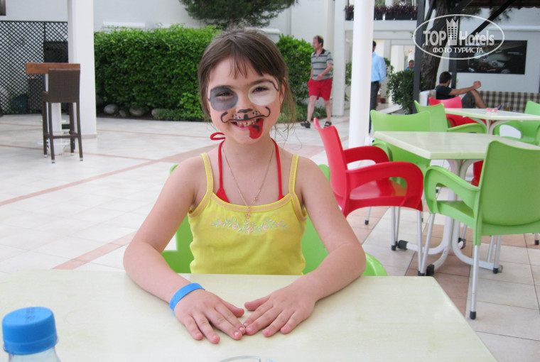 Замечательный отель!!!!!!!!! в Турции не раз бывала, поэтому есть с чем сравнивать! Отдых на все 100%. территория отеля очень большая и уютная. Отдыхали с подругой и с детьми. приехали к обеду, нас провели в ресторан, а после того как поели, разместили в очень уютные бунгало!в номере бесплатный сейф, мини-бар(заполняется 1 раз при заезде), 3 кровати, шкаф, ТВ, кондиционер. питание очень разнообразное, столы всегда чистые, официанты быстро все ненужное убирают со столов, территория ресторана достаточно большая. В отеле нам вообще скучать некогда было, дети с 10 утра в МИНИ-клубе с замечательными аниматорами Леной и Юлей. Мы, взрослые на зарядке потом аква-аэробика, волейбол,бассейн. СПАСИБО ВСЕМ АНИМАТОРАМ ЗА ОТДЫХ! ДЖЕМ, Шериф, Даша, Люда, Лена, Юля, Эркан и все остальные. Анимация просто СУПЕР!