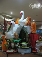 Еда была очень разнообразная-много мяса, рыбы разных видов, куча разных салатов, огромный выбор сладкого. Вечерами всегда жарили мясо на гриле. Из фруктов выбор был не особо великим, может из-за сезона- были апельсины, абрикосы, яблоки, несколько раз арбузы, бананы. Но мы так наедались, что до фруктов уже дело не доходило.Выпивка -вино, пиво, водка, раки, фанта,спрайт, горячий шоколад, капуччино,кофе,чай. В лобби баре делали бесплатно коктейли.Система All incl + до 24.00 бесплатно. На территории отеля в одном из баров можно было покурить кальян с 21.30 . Стоит 9 баксов.