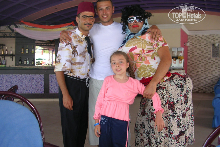 Отдых очень понравился. Все было супер. Питание отличное. Кто-бы что ни говорил, а еду можна найти на разный вкус для каждого. все пожелания учитываются мгновенно. Обслуживание просто супер. повара, официанты и бармены класс. Аниматоры просто ураган. Особенно понравились два Ахмеда, Юля и их главный лысый (имя не помню). Все весело, коллективно, смешно, постоянно что-то мочат. Два момента которые не понравились. Берег плохой, большие камни и трубы в воде. И отельный гид Шахмар. Встретил не приветливо. забрал у нас туристический ваучер и отдал его только в день отьезда. Сразу по приезду рассказывал нам на какие экскурсии нам надо ехать. цены в районе 40-60 у.е. на одного. прогулявшись по рынку мы узнали что он покупает эти экскурсии у них за 20-30 у.е, накручивает в три дорога, и продает в отеле, рассказывая, что на путевки с рынка страховка не идет. Разница естественно как вы поняли кладется в карман. Но как говорится в семье не без урода. В общем отель рекомендую. С прикольніми аниматорами время летит мгновенно.