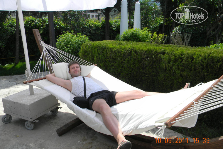 Если по какой то причине вы решили не идти на пляж — отель не даст вам скучать. Прекрасный большой открытый бассейн с детским «загончиком» и джакузи!!!!!, вокруг шезлонги с грибочками, два гамака (к слову — они просто роскошны!), чудесный сад с пальмами и экзотическими растениями. Рядом бар, пункт выдачи полотенец, мини-офис улыбчивого фотографа, который очень любит русских деток (они все ему отвечают взаимностью), амфитеатр, рубка аниматоров, туалет, стол для пинг-понга, беседки с Гёзлеме и балийским массажем. За амфитеатром ещё один небольшой бассейн, в котором, однако, три вида аква-горок (отличная, надо сказать, штука).