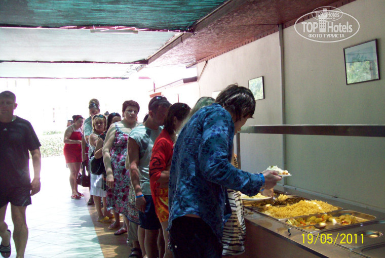 Дорогие туристы,которые собираются отдыхать в этом отеле!!! Обращаюсь к Вам, чтобы Вы не сделали глупости и не выбрали все-таки этот отель!!!Если хотите себе испортить настроение- просто найдите другой способ,ненадо так далеко ехать! Начну по порядку.Приехали мы в этот отель от "Анекс - тура" (в народе -Анус-тур),больше никто с этим отелем не сотрудничает. По дороге от аэропорта ни водитель,ни гид не знали где этот отель, поэтому, заехав в Кириш, они по очереди спрашивали у охранников других отелей как туда проехать.Мы,конечно, насторожились уже тогда, но, твердо настроеные на позитив решили не расстраиваться,успокаивало и то, что отель,все-таки 4*!Ужас начался с ресепшн-нас встретили трое грязных,без формы турков,которые совершенно не понимали по русски!Ключи от номера мы получили скоро,но ...это был не номер-окна деревянные,дверь на балкон плохо открывалась, В ванной было только жидкое мыло фиолетового цвета,от которого сразу же (!) начала слезать кожа с рук!При встрече с гидом (которая была назначена наверное специально перед ужином,чтобы не возникало никаких вопросов о питании) нас ознакомили о наявных экскурсиях и строго предупредили об опасностях на экскурсиях,купленных с улицы (хотя они дешевле и лучше-знаем по опыту).Ужин в отеле-это был ШОК!!!Около столовой турок жарил соевые котлеты и кабачки,от котлет запах стоял отвратительный,по видимому они были испорчены еще призакупке!Очередь подошла через минут 30,потом пошла очередь за гарниром-еще 30 минут!Когда очередь подошла,оказалось,что мы стоим за прокисшими макаронами (кстати разных сортов вместе сваренных,к тому же дня 3 назад),Картошкой (тоже прокисшей) и густо приправленной тушеной фасолью (тоже сомнительного качества).В другом зале были помидоры,с остатками грязи,огурцы,и испорченные оливки:( И так продолжалось изо дня в день!!!Сладости,которыми славится Турция-мало,на всех не хватает,иногда разрезанные наполовину,серху присохшие!Один раз нашли курицу, и то через жалобы отдыхающих,но ее всем не хватило,а когда кто-то брал 2 куска-извините,реакцию голодного народа можно и не предвидеть!!!Я еще никогда не видел,чтобы в Турции ели столько хлеба!но в этом отеле понял-это единственный свежий продукт!Вечером близ отеля очень воняло...Баня-грязная,еда - отвратительная,официанты-без формы,грязные,близ отеля-стройка,которая работает целый день,пыль идет в бассейн(когда искупался-в пупке была грязь!),антисанитария.Пляж-это не пляж,а выход к морю,где много окурков и поломанные шезлонги без матрасов!!Анимация-на сильно ломанном русском,спиртного в баре зачастую уже нет!И еще-чтобы переселиться в отель другой-надо дать отельному гиду Нариману 220 у.е. на лапу!Отельный гид Нариман-личность мерзкая,подлая,хитрая и злопамятная,лучше сним не связываться,хорошее отношение к вам стоит 50у.е.+экскурсии!Очень жалею о прожитых там днях,обидно и жене!Люди приезжали-были в шоке-одна женщина стояла со слезами на глазах и говорила,что такого в Турции еще не видела! кстати-кофе,капучино-пить невозможно-запах,как-будто там стирали портянки от роты солдат!ЕСЛИ МОЖНО ОТКАЗАТЬСЯ-ОТКАЖИТЕСЬ ОТ ЭТОГО ОТЕЛЯ!!! Фото подаю (жалко. что мало-там не хотелось ничего фотографировать).Ой,забыл еще-после этого отеля привыкаю к стеклянным стаканам,так как в этом отеле все стаканы пластиковые,да еще и мытые(или просто полосканн