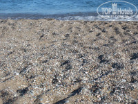 - Пляж, действительно, самый лучший в Фалираки – здесь преобладает крупный песок с вкраплениями мелкой гальки и ближе к берегу полоса гальки. Пляж широченный, есть место устроиться на своем полотенце, если не хотите брать лежак. Песок тут кориченеватый, если кто мечтает о белом песке типа «баунти», этого тут нет.