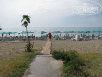 Территория понравилась. Да, бегают по территории петухи, курицы, цыплята, кролики, но для кого-то это "фу, деревня", а для кого-то "ути-пути какая прелесть". В нашем случае был второй вариант, так что никакого дискомфорта от живности мы не ощущали. Хотя слышали от людей, живущих ближе к ресепшену, что петух их будил своими криками. Но мы жили ближе к морю и всем остальным прелестям (бар, ресторан, бассейн), так что пожаловаться не могу. Вообще советую по возможности выбирать номера в районе 160, с одной стороны не так далеко идти к морю, с другой уже не слышно дискотеки. Если жить возле ресепшена, то это минут 10 прогулочным шагом до пляжа. Опять же кому-то это понравится, все-таки идешь не по степи или пустыне, а по красивой территории, причем в шикарном тенечке от деревьев, но кому-то может быть и лень, тем более ходить не раз и не два за день.