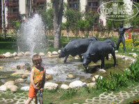 Территория отеля благоустроенная, красивая и чистая. Много фонтанчиков, причудливых фигур, большое количество разнообразных пальм, растений и цветов. Среди всего этого великолепия располагаются гамаки и лавочки для отдыха (ребенку очень нравилось покачаться в гамаке).