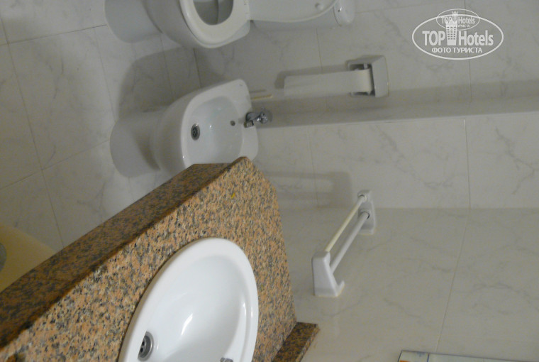 Ездили с подругой по рулетке от Пегаса. Первое впечатление было положительным. Номер не маленький, стоят две одноместные кровати, которые сдвинуты вместе, ванна с неподвижным душем, есть биде. Вид нам попался на Салоу и море. Отдельного кондиционера в номере нет. Был центральный кондиционер, но мы не заметили чтобы он работал.