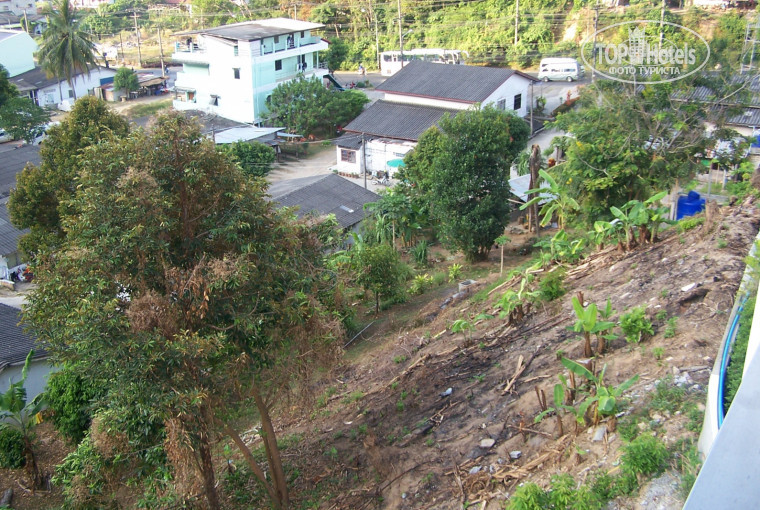 Дорогие друзья, я категорически не советую вам отдыхать в этом отеле. Первый его недостаток: участок для постройки выбран по принципу"что было подешевле и похуже". В результате это не вторая и не третья, а некая шестая линия, за отелем лишь поросшая лесом гора. По соседству с этим отелем располаются немудрящие поселения местных жителей, которые разводят всякую птицу и скотинку, и шоссе. По ночам орут пять или шесть петухов, поутру задумчивая тайская бабушка под балконом жарит в кострище некую еду, печет корешки. До шикарного пляжа Карон - более 20 минут пешком по жаре, причем поначалу по шоссе без тротуара, по которому носятся мопеды, затем по жаркой городской улочке. Если вы бы хотели прийти в обед в номер, освежиться и подремать, на дорогу туда и обратно уходит примерно час. Поближе крошечный пляж Ката, но туда как раз впадает некая речка, видная на карте Гугл.До цивилизации - пешком минут двадцать, до тусовки - все 30.