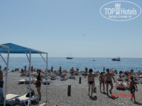 пляж мерил сам 15 шагов в ширину в длину не мерил смысла нет лежаков часто не хватало рядом городской пляж с обилием турков. ксати пляж для двух отелей солим инн тоже здесь. вход в море мелкая но колкая галька где то в 15 метрах от берега в море песок. обязательно купите маску с трубкой подлводный мир не богат растительности нет совсем зато я лично видел осьминогов небольших двух скатов и кучу непонятной рыбы в т.ч и больших около 1 м в длину. возле сайлоровского помоста можно поискать деньги находил евроценты. украинские. русские и турецкие.