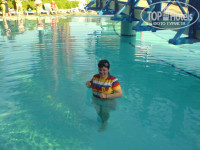 Отель состоит как бы из двух частей - тихая с бассейнами, горками, баром,