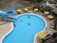 ТЕрритория - мизер... Точнее, её практически нет, дорожки с зеленью вокруг бассейна, да маленький лужок для детворы за амфитеатром, и всё. Это - пожалуй самый большой минус отеля. Так что любителям погулять по тропинкам субтропического сада придётся выходить из отеля. Мы - всё время проводили на пляже (кроме бара и анимации после ужина), поэтому нас это - мало напрягало. Бассейн тоже достаточно скромненький, неглубокий, прямо в нём 2 горки и рядом "зонтик" с джакузи. Очень компактно.