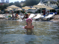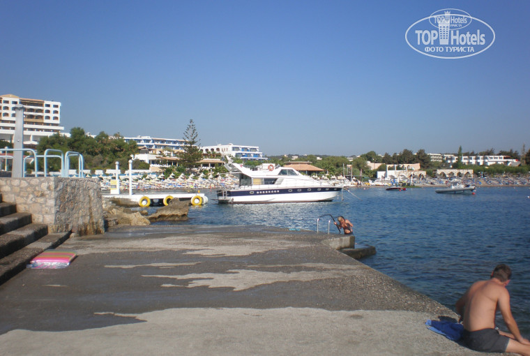 Отель хорош всем, оправдал все ожидания, с языком проблем нет, обслуживание на высоте, но конечно по гречески. Все очень вежливые и не навязчивые. номер был на втором этаже в главном корпусе с видом на сад:) это было правильно для нас, потому как с видом на море окна выходят на анимационную площадку, что в нашем случае не гуд, ибо шумно. Разместили мгновенно, все было для нас готово и холодный ужин в холодильнике и напитки, прилетели ночью т.к. рейс с задержкой в 5 часов. Пляж маловат для такого большого отеля, но вроде места всем хватало. Анимацией не интересуюсь, но детские дискотеки - ежевечерне. В детском клубе девочки из Латвии - по русски говорят. Питание более чем достаточное: салаты готовые и нарезанные ингредиенты для само составления, соусы, гарниры (вареные, тушеные, поджаренные), супы пара видов, рыба в разных вариантах, мясо, паста, пицца, пирожные, торты, желе, мороженое, выпечка, фрукты. Лишь на завтрак каш для детей не было, была имитация манной каши - нечто очень жидкое, мы туда шоколадный рис сыпали и ребенок завтракал спокойно. Мороженое фрукты, напитки всякие и алкоголь в не ограниченном количестве и свободном доступе. Есть кинотеатр с диванами - фильмы на английском языке можно посмотреть с комфортом. Горка длинная, катались ежедневно, в пределах 10-15 минут езды в сторону Фалераки есть аквапарк хороший. Напротив отеля можно машину взять на прокат и объехать весь остров. Недалеко есть магазин детский Джамбо, по дороге к Родосу есть пара супермаркетов. в общем отель расположен удачно, можно погулять по острову и просто на пляже по плавиться. Всю экскурсионную программу выполнили сами.