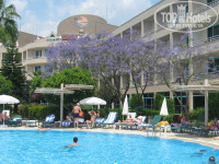 Территория отеля маленькая, ухоженная, зелени много, как раз то, что и выбирали. Бассейн всегда чистый, водные горки есть, катались с детьми. Было очень много пар с маленькими детками, этакий большой детский сад, прикольно.