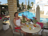 И еще очень приятный момент, который меня лично очень радовал. Это внешний вид самого здания отеля и всей территории. Было невероятно приятно сидеть утром за завтраком и любоваться белоснежным корпусом отеля с голубыми балкончиками в кипрском стиле и ярко-голубым бассейном, территорию вокруг которого мыли и драили каждое утро.