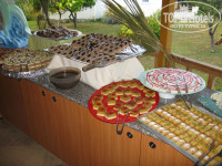 Питание: самое лучшее в отеле, это питание. Повара стараются по максимуму и готовят каждый раз разнообразные блюда. Мясо, курица, рыба, большой выбор салатов и сладостей. Ребенок друзей постоянно был сыт, не говоря уже о взрослых. Хлеб выпекаю прямо в отеле - от этого еще вкуснее, особенно лаваши. Еда почти не отличалась от российской, поэтому переход для желудка был незаменым. В барах бесплатно: концентрированные соки, местная водка, раки, ром, красное и белое вино, пиво. Каждый комбинировал по разному, особенно удачно получался джин-тоник с кусочком льда. О спиртном сильно не заморачивались, привезя из ДьютиФри стратегический запас виски и рома. В середине дня, около пляжа, бабушка пекла тонкие лаваши с разнообразными начинками.