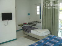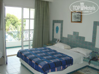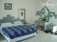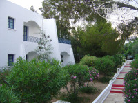 Отель состоит из основного корпуса и тунисской деревни,где мы и жили.Маленький,утопающий в зелени, квартальчик из домиков, оформленных в греческом бело-синем цвете.Дома двухэтажные на 6-8 номеров.
