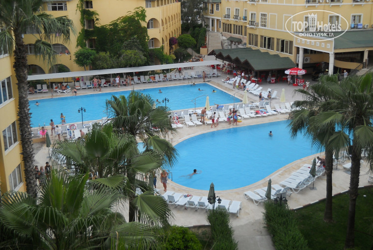 Были в отеле с 12.06.11 по 19.06.11. ПРиехали в отель вечером где то около пяти. Разместили быстро. Номер дали не плохой.Единственный минус это балкон, очень маленький. Сама территория отеля не большая, но все очень уютно и чистенько. Еда мне понравилась, конечно больших разносолов не было. Но на завтрак яишницу жарили, блинчики. Много сладостей., овощей, из фруктов только арбуз, яблоки, грейпфриут и апельсины. За третим корпусом бабулька печет лепешкри с сыром и картошкой. Обалденно вкусно. Пляж тоже не очень большой, но чисто убирают постоянно. Идти до него минуты 3-4. Сами туристы конечно тоже свинюшки. Попили поели и бросили рядом с лежаком, а потом жалуются что пляж грязный. Везде стоят урны можно все выбросить. Анимация очень понравилась. Ребята молодцы, очень старались. По русски хорошо говорят. ездили на экскурсию в Памуккале. Очень впечатлила. Минус это дорога. Ехали туда и обратно часов 10 наверно. Утомляет. Купались в бассейне клеопатры, вода там обалденная, 36 градусов. Вообщем я довольна отелем и отдыхом. Могу порекомендовать его семьям с детьми.