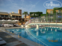 Нам достался номер у главного бассейна на 1-ом этаже с небольшой террасой - супер, вышел из номера и сразу у бассейна. Есть детский бассейн, рядом находится pool bar. Пляж напротив через небольшую дорогу-променад, там же находится beach bar, детская площадка- мини клуб и амфитеатр, где проходят вечерние шоу.